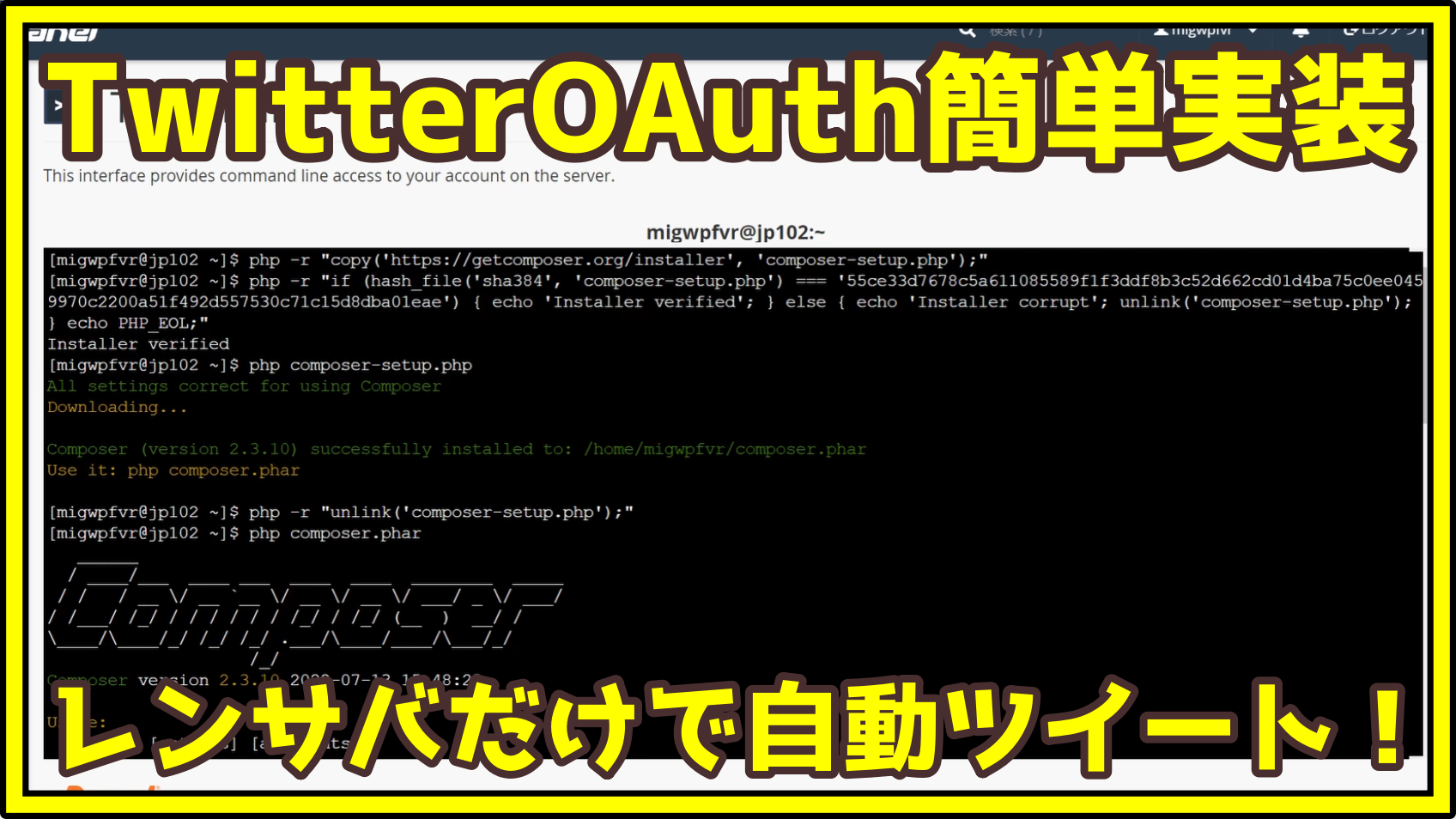 お次はcomposer経由でTwitterOAuthをインストールします、場所はtwitterを自動ツイートしたwordpressがインストールされたルートディレクトリにしました。